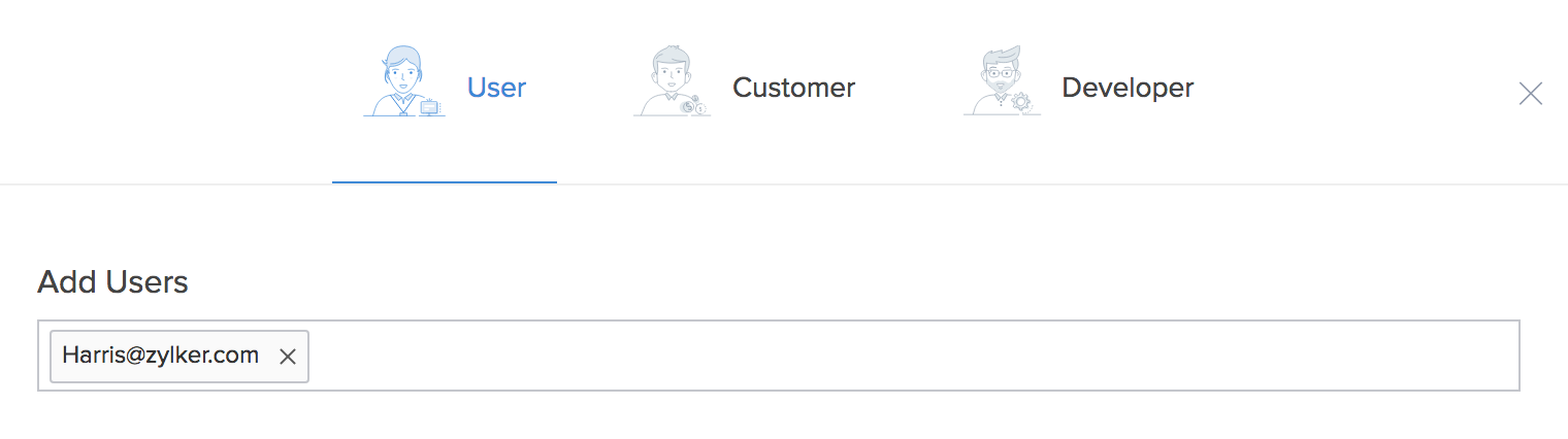 - The share application with tab will appear. This tab contains three different sections : Users, Customers , and Developers. Users are the induviduals who need to access your application. Eg: employees, consultants etc. To share application with users select the Users section.