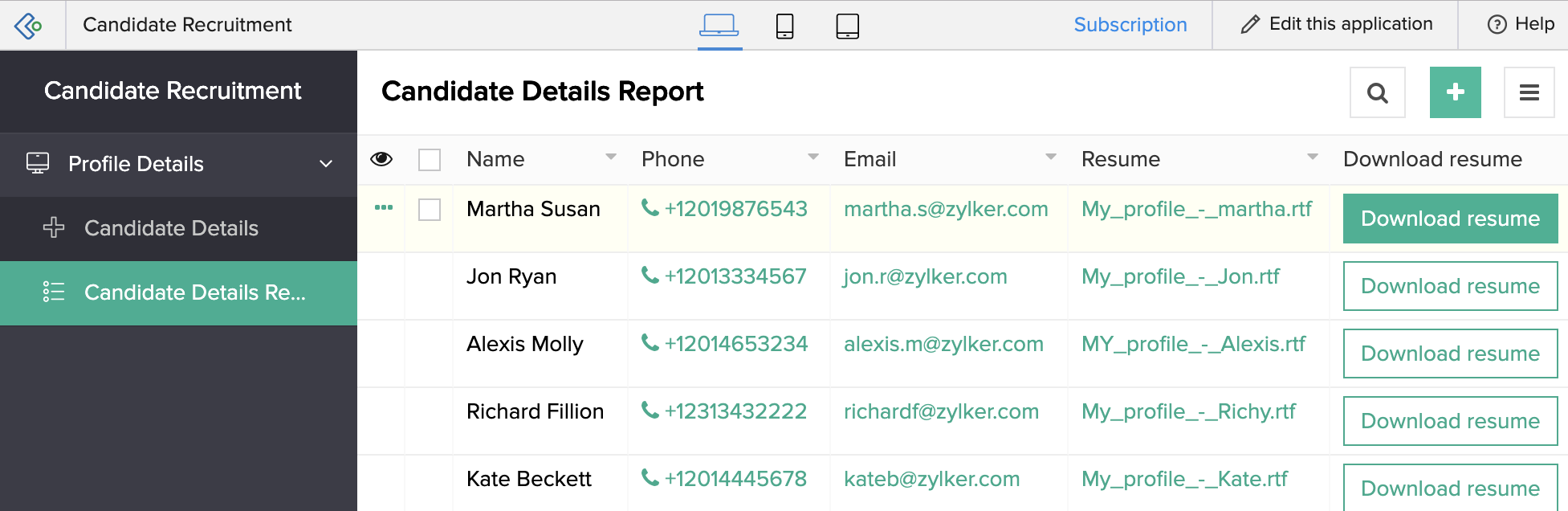 Now, when you access the Candidate Details report, you can see the Download resume button: