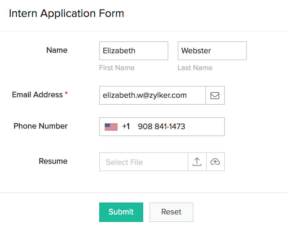 The following images show how an Intern Application Form looks when a user accesses from a web browser: