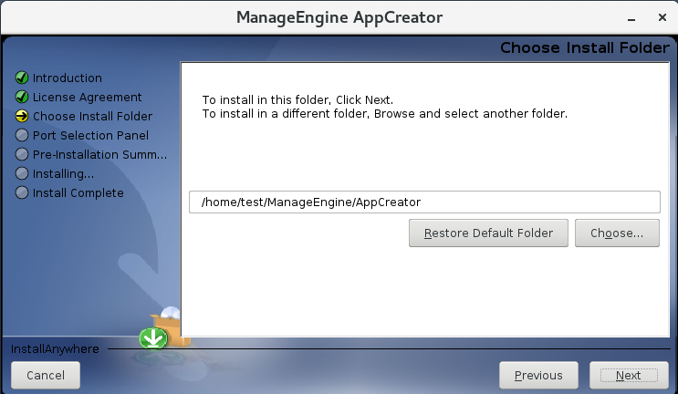 - Execute the installation file using the command:./ManageEngine_AppCreator.bin