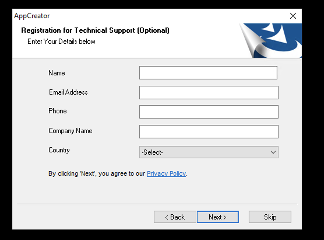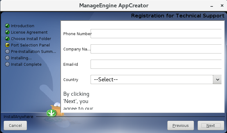 - Enter your details for contacting ManageEngine's technical support, then click Next.