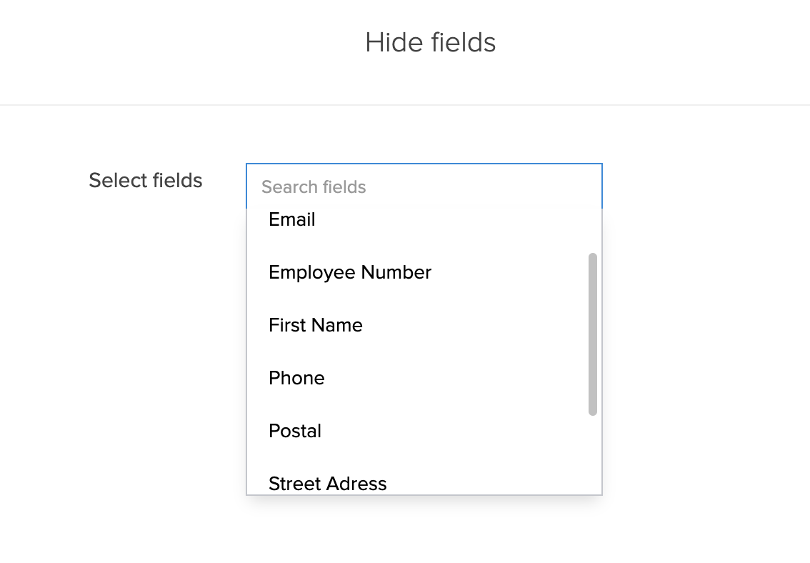 5. The Select Fields drop-down lists all the fields in your form. Select the fields that you want to hide.