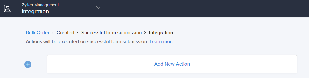 To configure the action,- While creating a new workflow choose the Successful form submission option in the When to trigger workflow dropdown.
