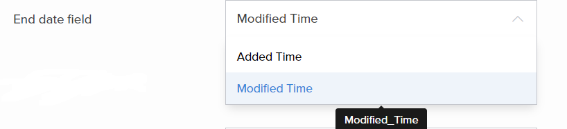 - Choose the End Date Field. The dropdown will list all the date fields in the form.