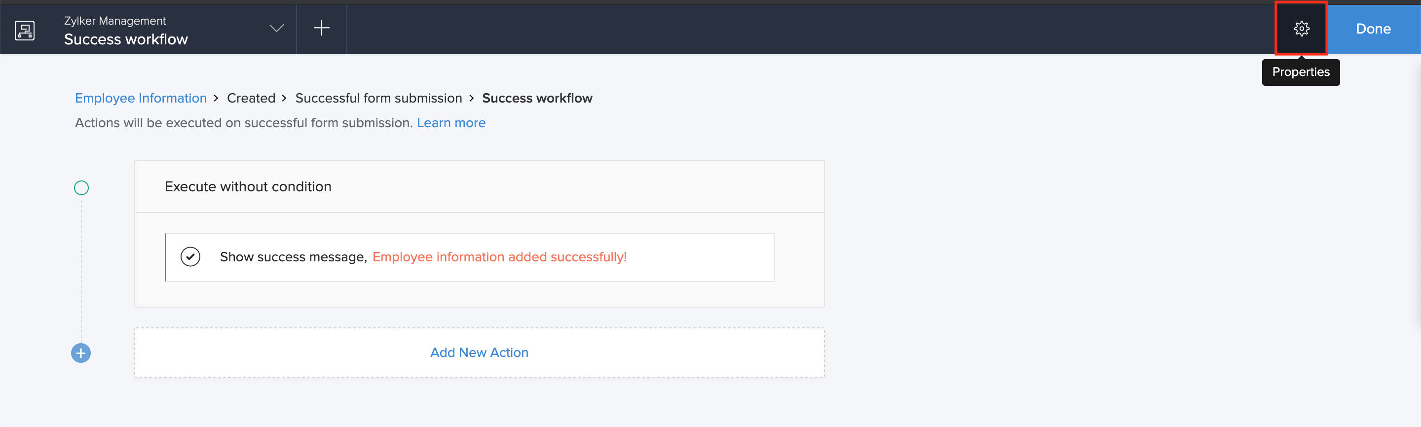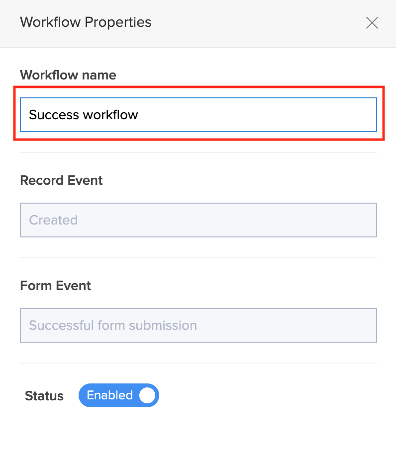 - The Workflow Properties window will slide in from the right. You can make changes to the name of the workflow here. Any changes that you make will be saved automatically.
