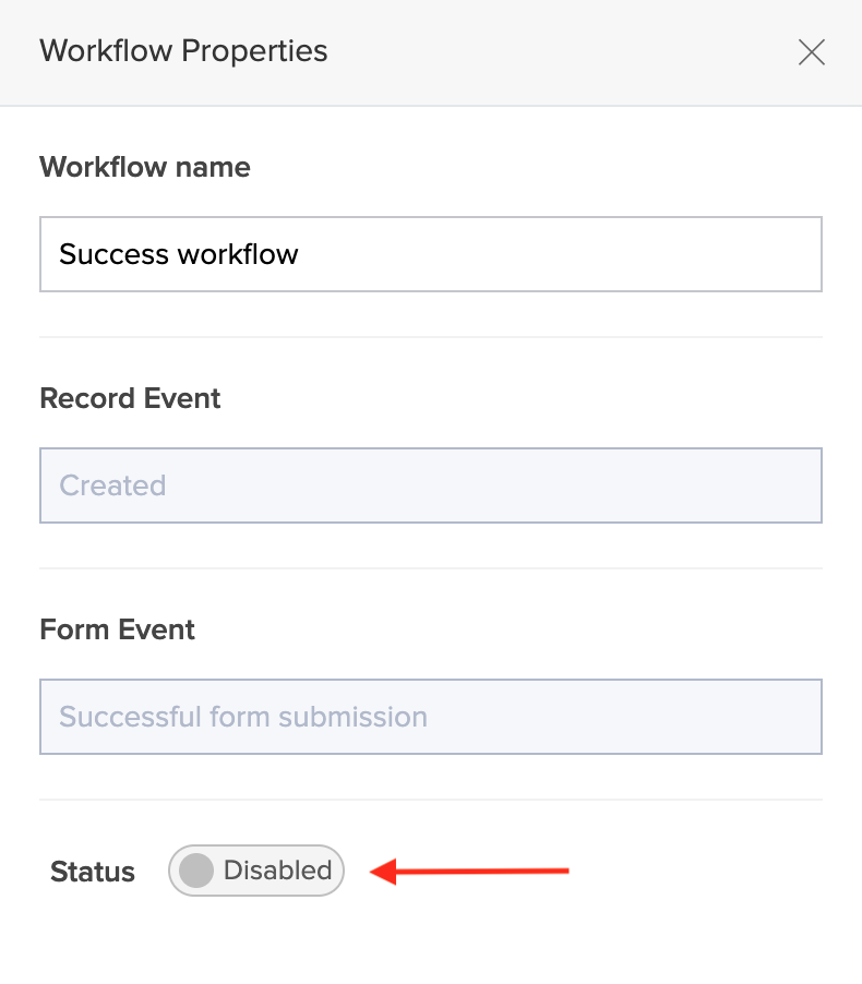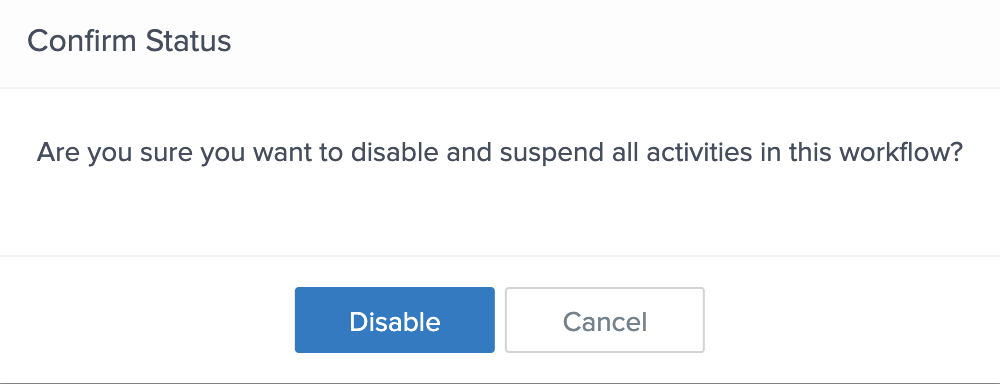 - The workflow can also be disabled from this pane. To do so, click on the Enabled toggle button. A alert box will appear requesting confirmation.