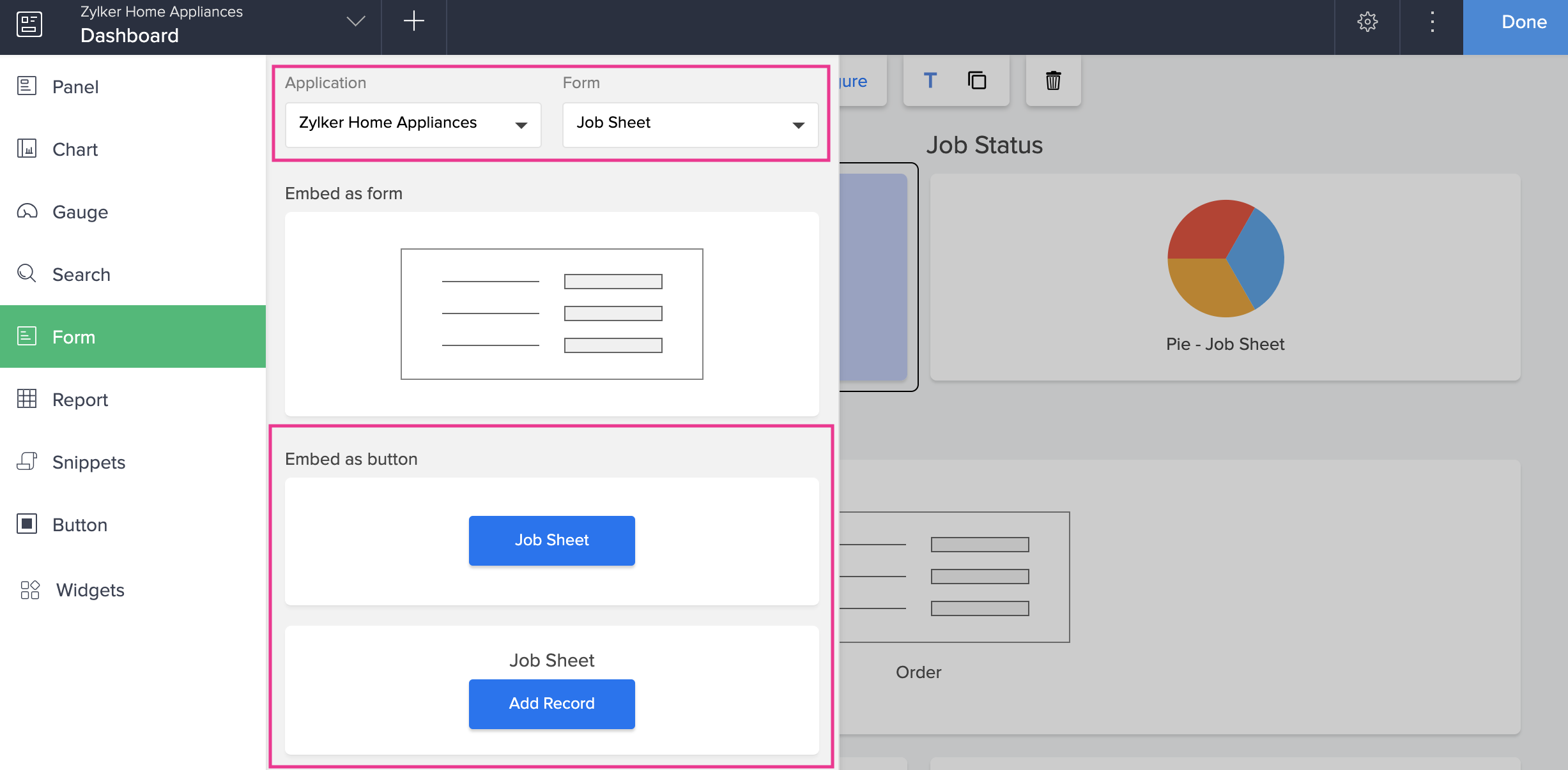8. Click and drag the button under Embed as Button option to embed the form as a button into the page builder. You can also double-click the required button type.