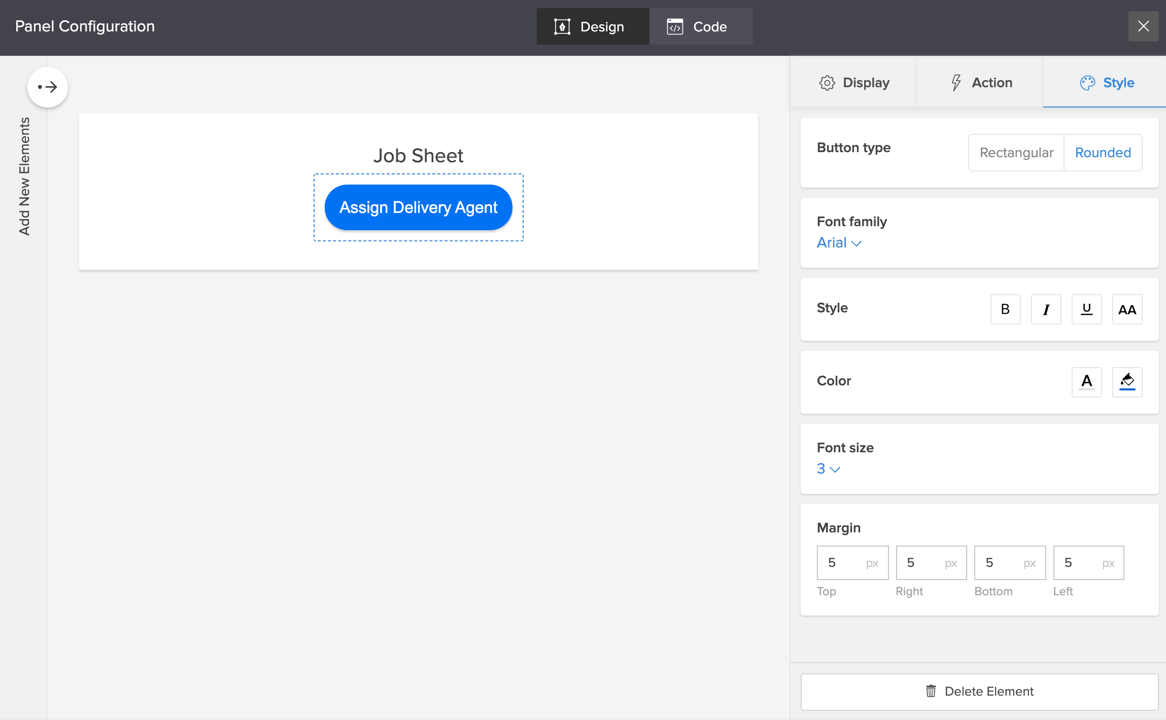4. The Display tab allows you to edit the display data, action and style aspects of the panel element depending on the button type you have chosen.