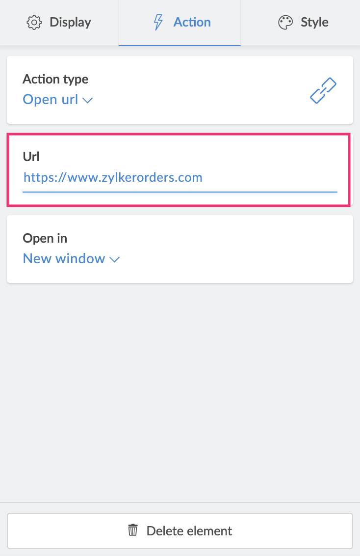 Associating an Open URL action to text allows you to redirect users to the specified URL when they click on the text.