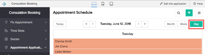 Let's assume that you have an application that allows out-patients to book appointments for consultation at your clinic. You can view these appointments in a calendar report. If you enable users to book appointments for a month, you can switch the views between day, week, and month to check the appointments for that particular day, the week, or the entire month, respectively.