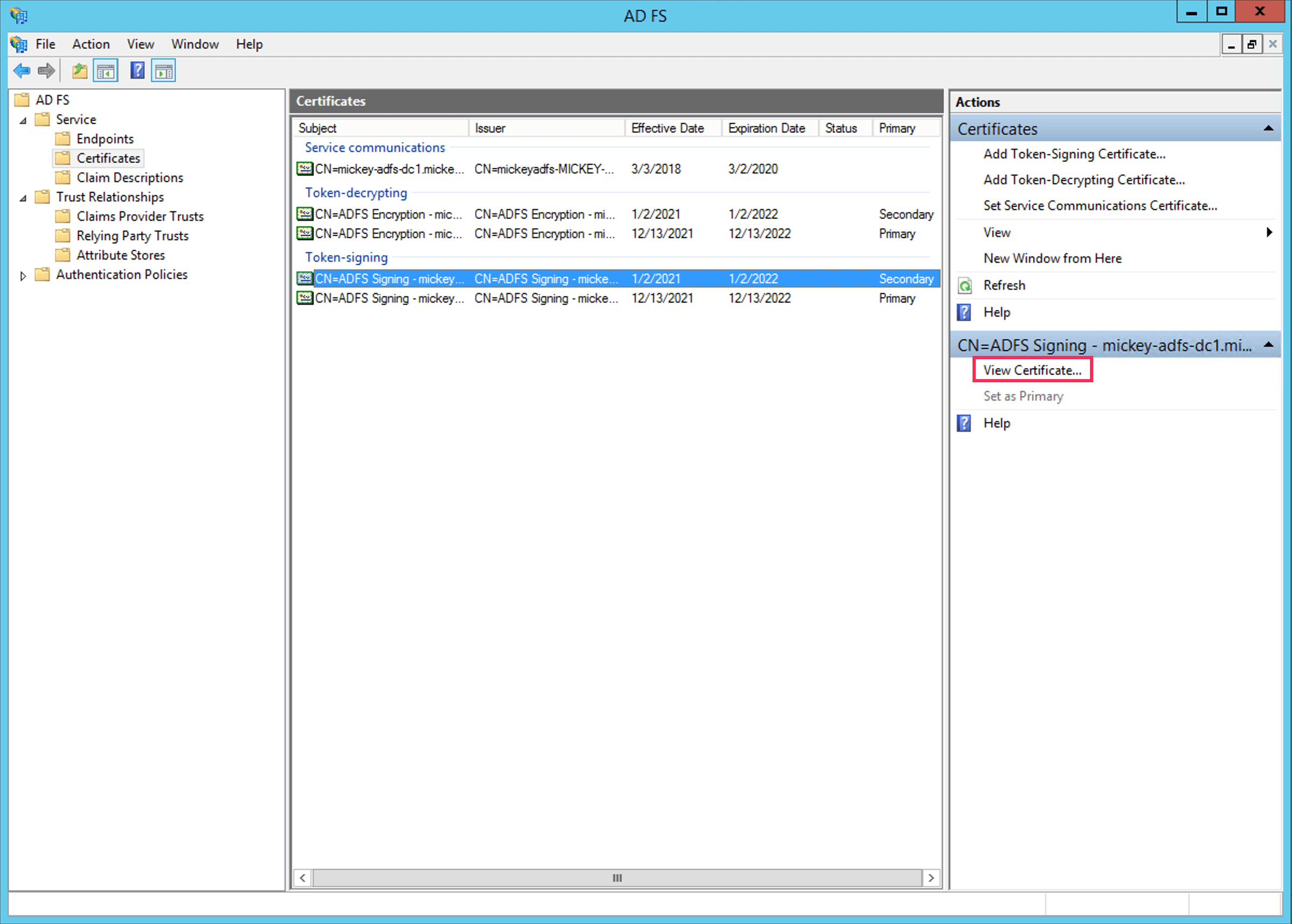 2. Log in to the AD FS 3.0 server and open the Management console.