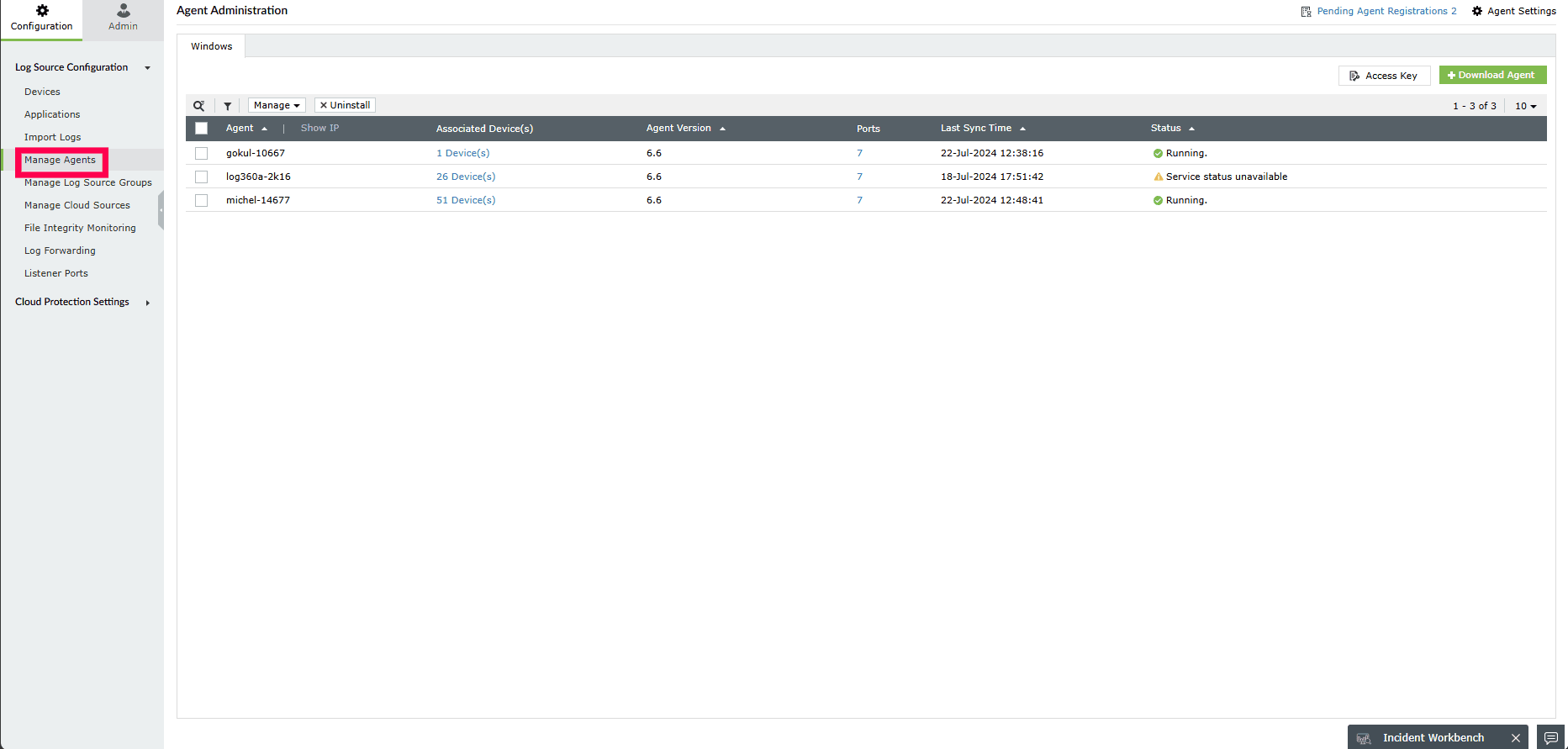 - Once the agent installation is completed, it will be automatically identified. However, the agent will not communicate with Log360 Cloud until it is approved.