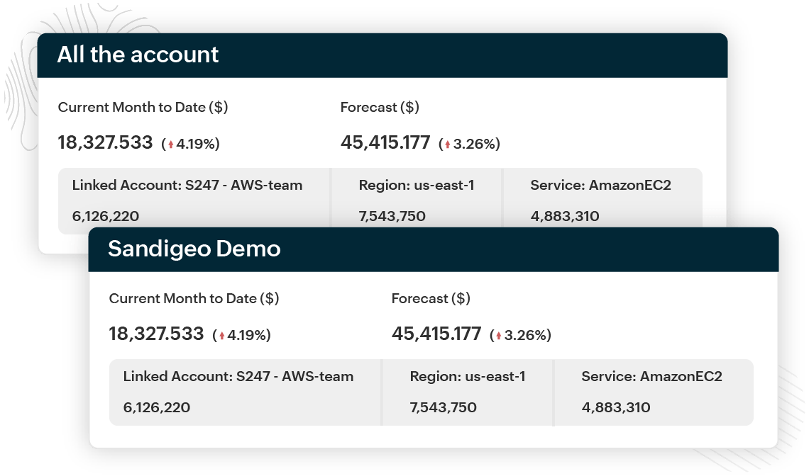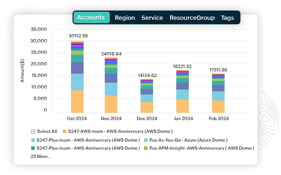Aggregate your costs by account, service, tag, and more in a single view. Our multi-dimensional reporting enables deeper insights and more informed financial decisions.