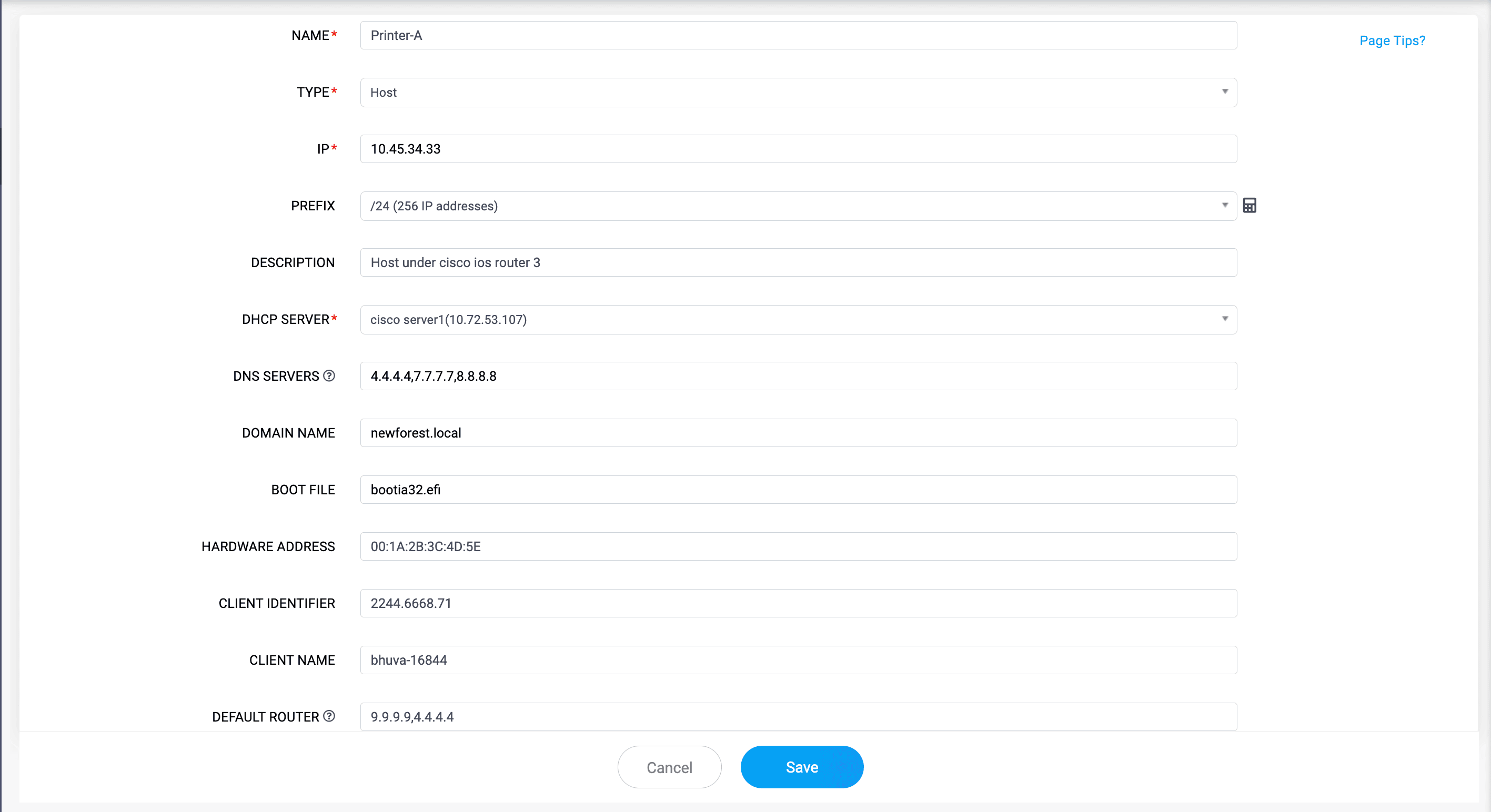 Note: The prefix value differs for both subnet and host type, and in host the prefix field will not be mandatory.