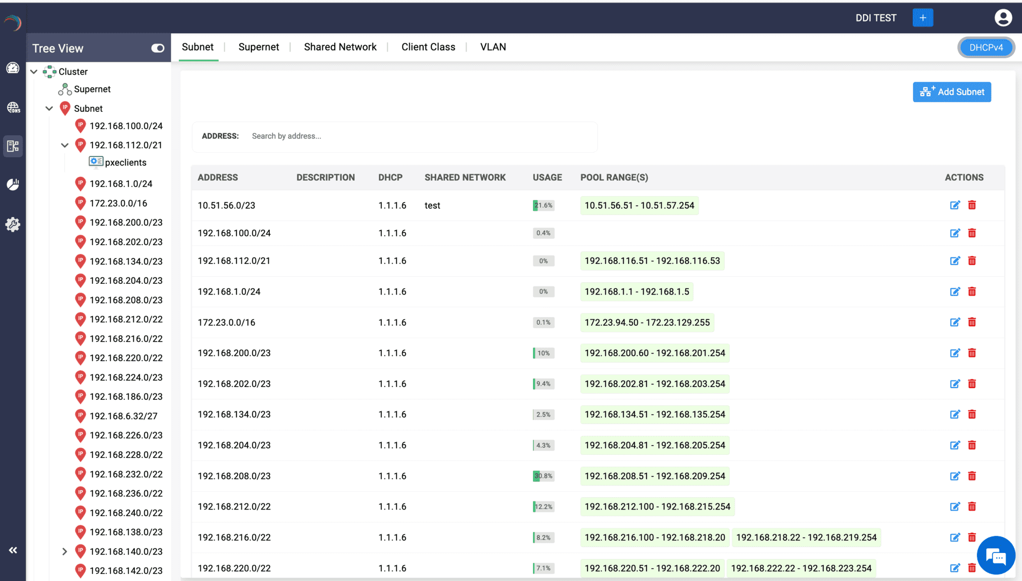 - A subnet represents a basic segment of IP addresses (IPv4 or IPv6) within a network. Defining, a subnet in DDI Central is used to define a range of IP addresses that the DHCP server can assign to clients on a specific network segment.
