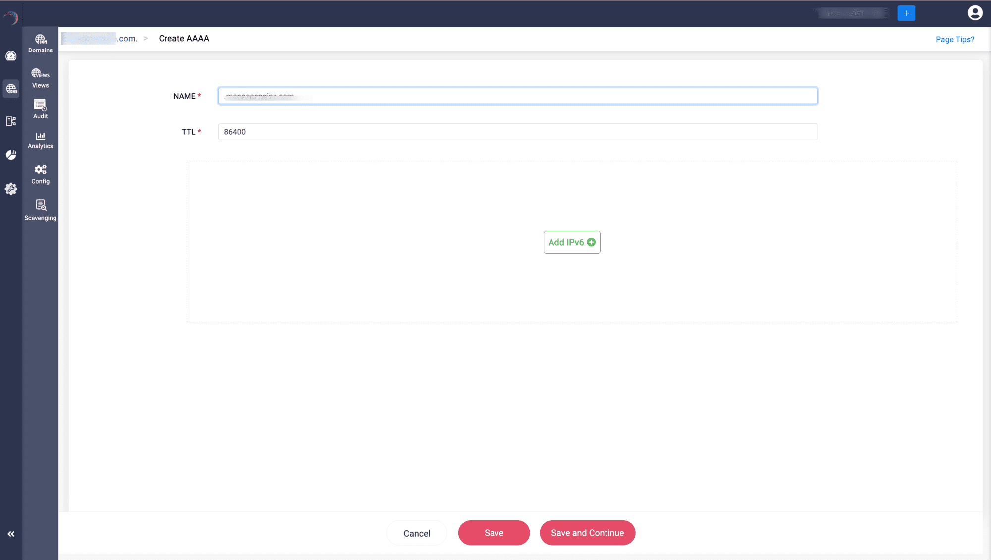 Note: You can enable creating and associating PTR records while creating an A or AAAA record. And, when an associated PTR record is disabled in an already created A or AAAA record, it won't be removed from the zone.