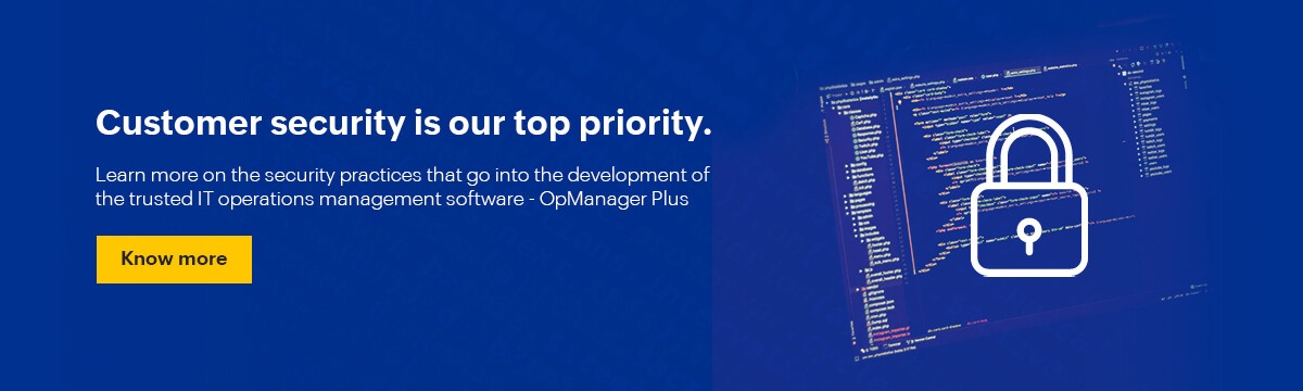 OpManager Plus, our full-stack IT operations monitoring tool ensures the availability of business-critical network devices and applications and empowers NetOps, DevOps, SRE's and IT leaders by turning raw data into actionable insights. By leveraging AI/ML, OpManager Plus streamlines complex IT environments, providing real-time visibility and control, optimal performance and reduced downtime.