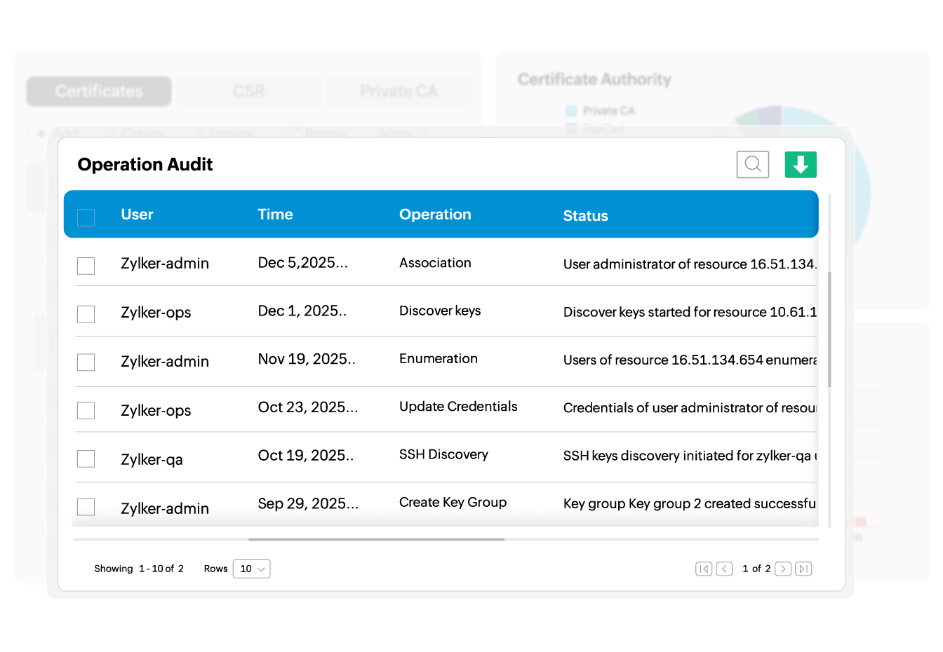 Import all your SSH keys and associated resources in bulk from existing files directly to Key Manager Plus. Further, with Key Manager Plus, you can create new key pairs and deploy them on target systems. Unique key pairs can be generated for each user account and the corresponding keys are deployed automatically on the target servers.