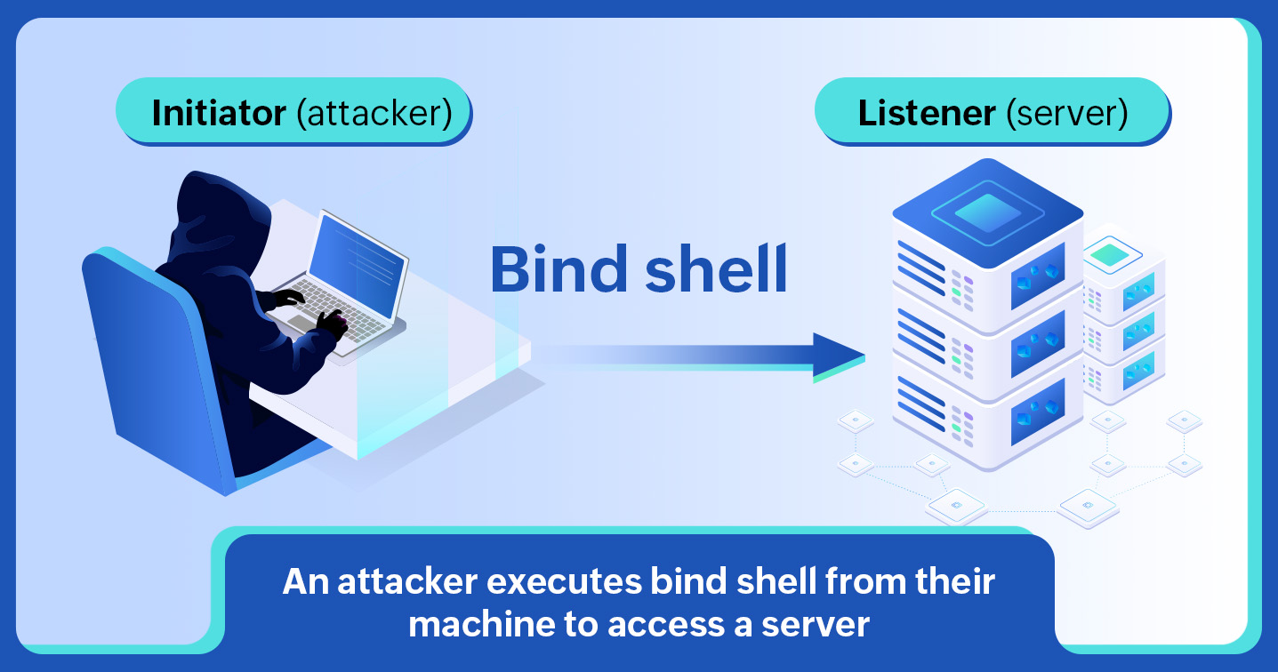 Bind shell is a process used by pen testers and attackers to connect to remote systems and transmit data. To do this, they need two kinds of systems: an initiator (client) and a listener (server).