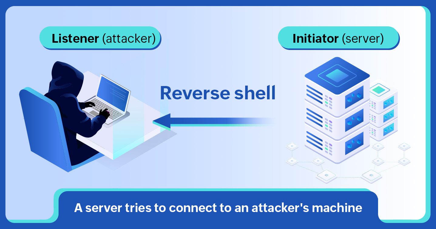 As the name suggests, in a reverse shell attack, the attacker operates as the listener and the victim as the initiator. In this process, the attacker looks out for initiators that send out remote connection requests for a specific port and forces them to connect to the listener.