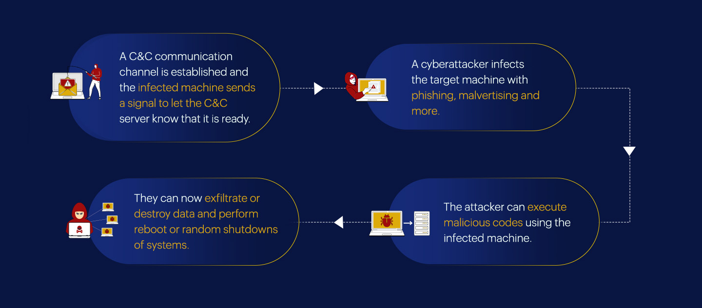C&C is a technique used by cyberattackers to establish and maintain discrete communication with compromised devices in the target network.