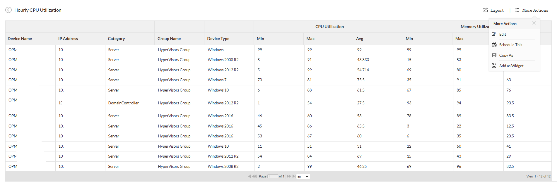 •  OpManager advanced reports: Group by columns