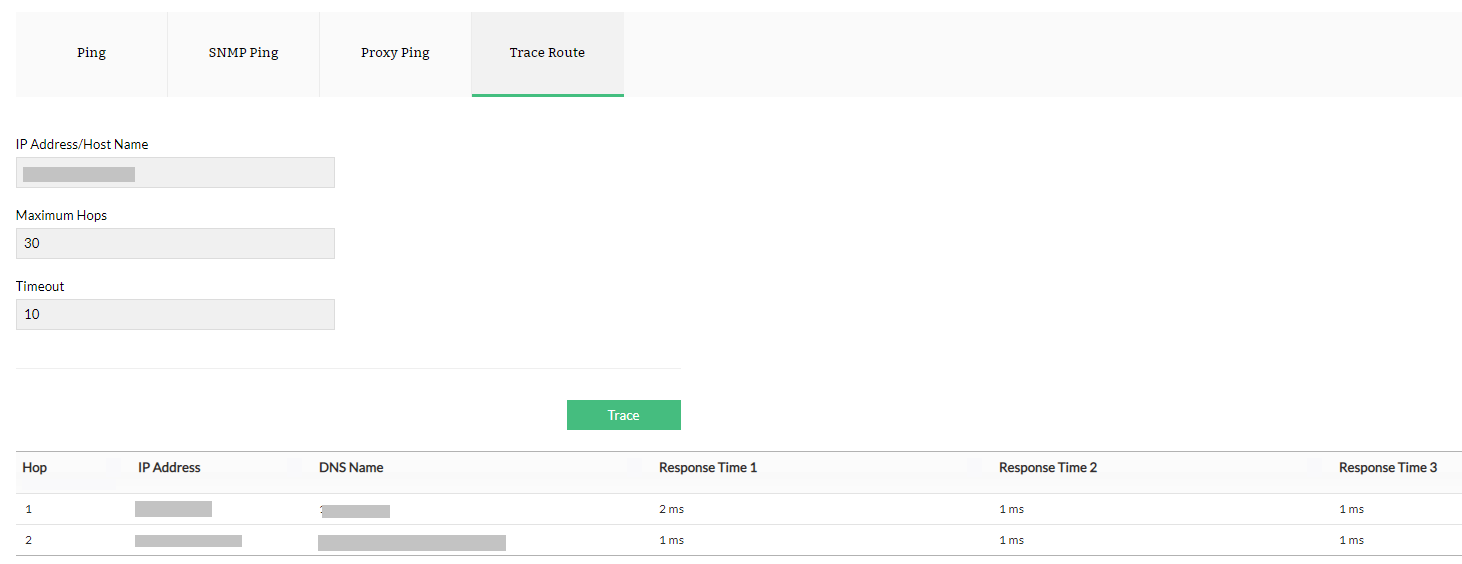 Here are some the network troubleshooting tools available in OpManager: