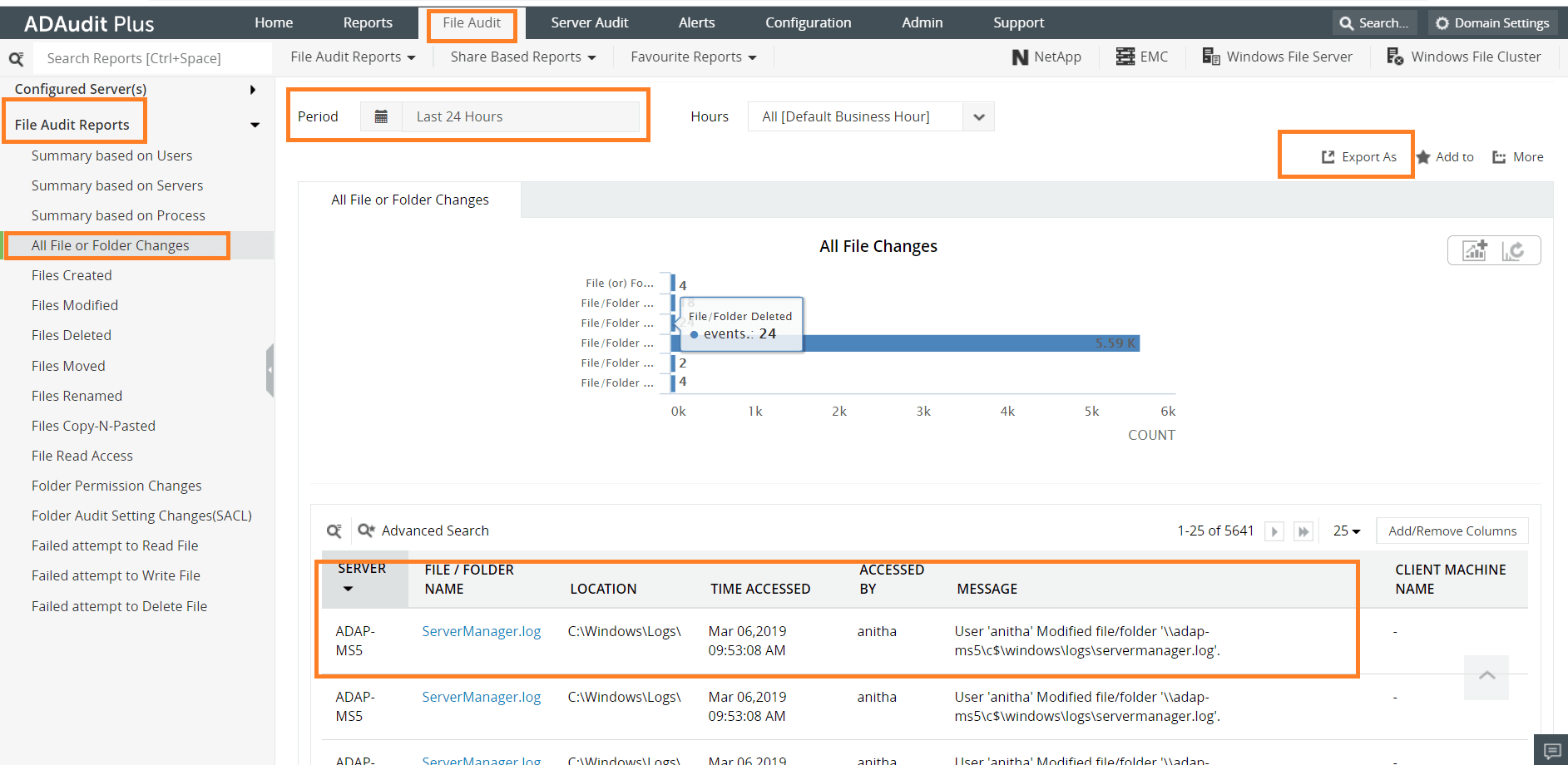 An easier way to monitor changes to files and folders is through a comprehensive Active Directory (AD) auditing and reporting solution like ADAudit Plus. Its intuitive user interface, pre-configured reports, and advanced filter options make it easy for you to track all the changes made to files and folders.