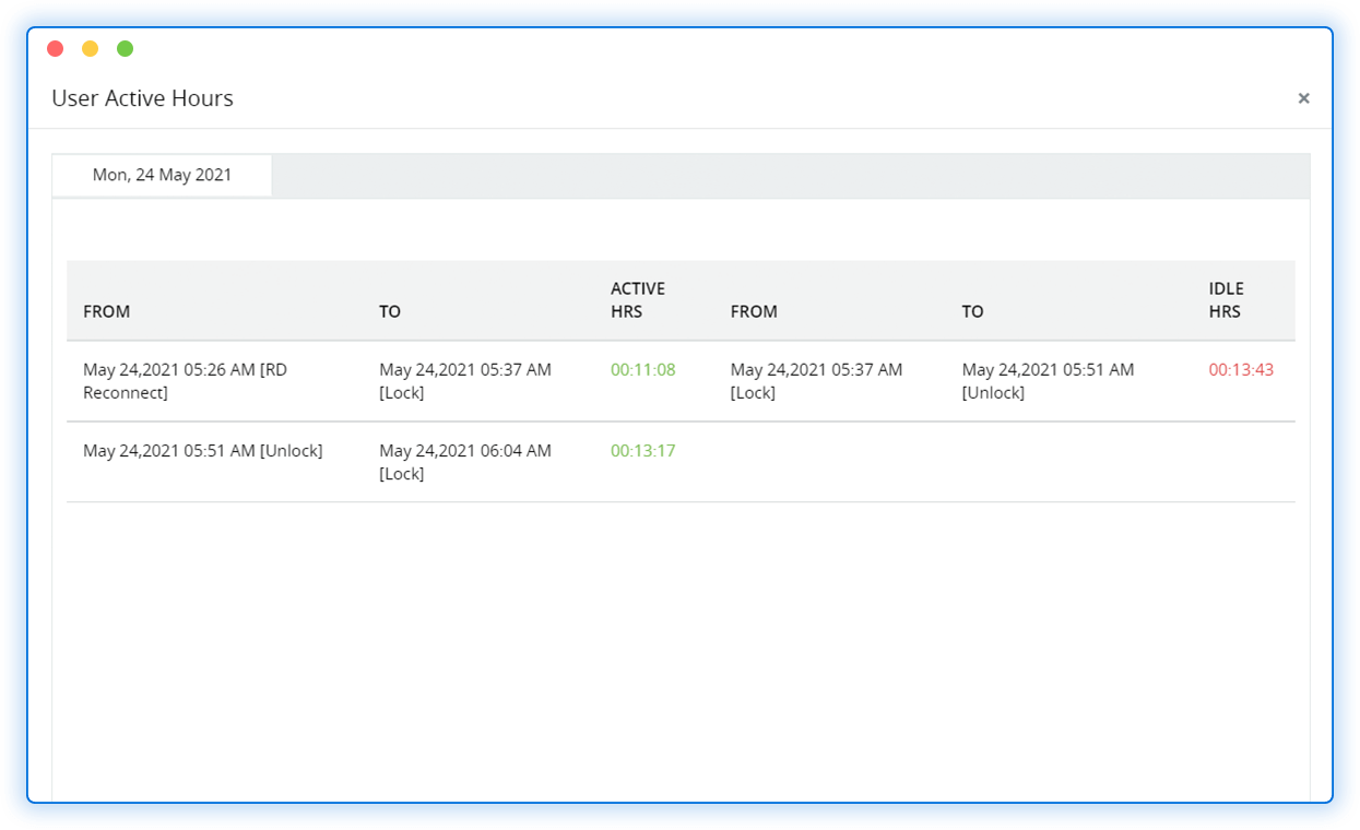 Analyze computer startup and shut down times, active and idle hours, screensaver start and stop times, and other metrics to measure employee productivity.