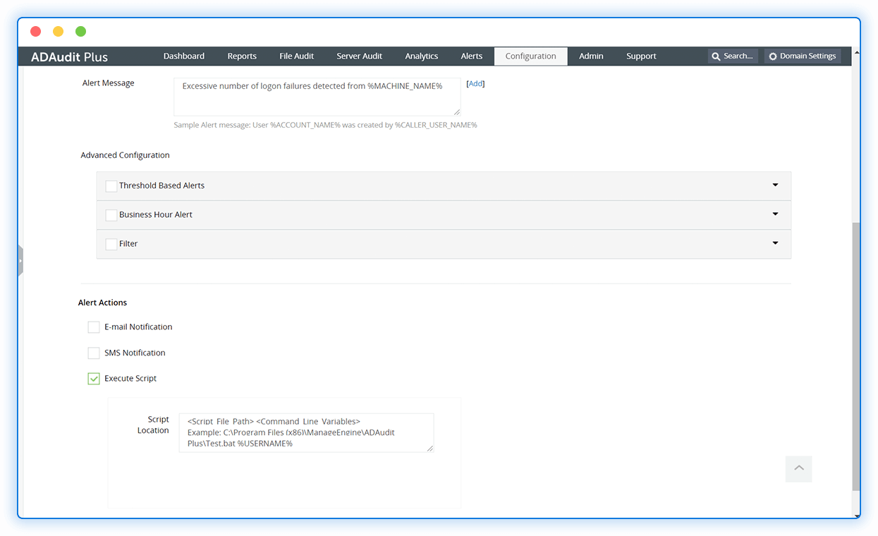 Receive instant, threshold-based alerts for logon failures and other logon anomalies through email or SMS.