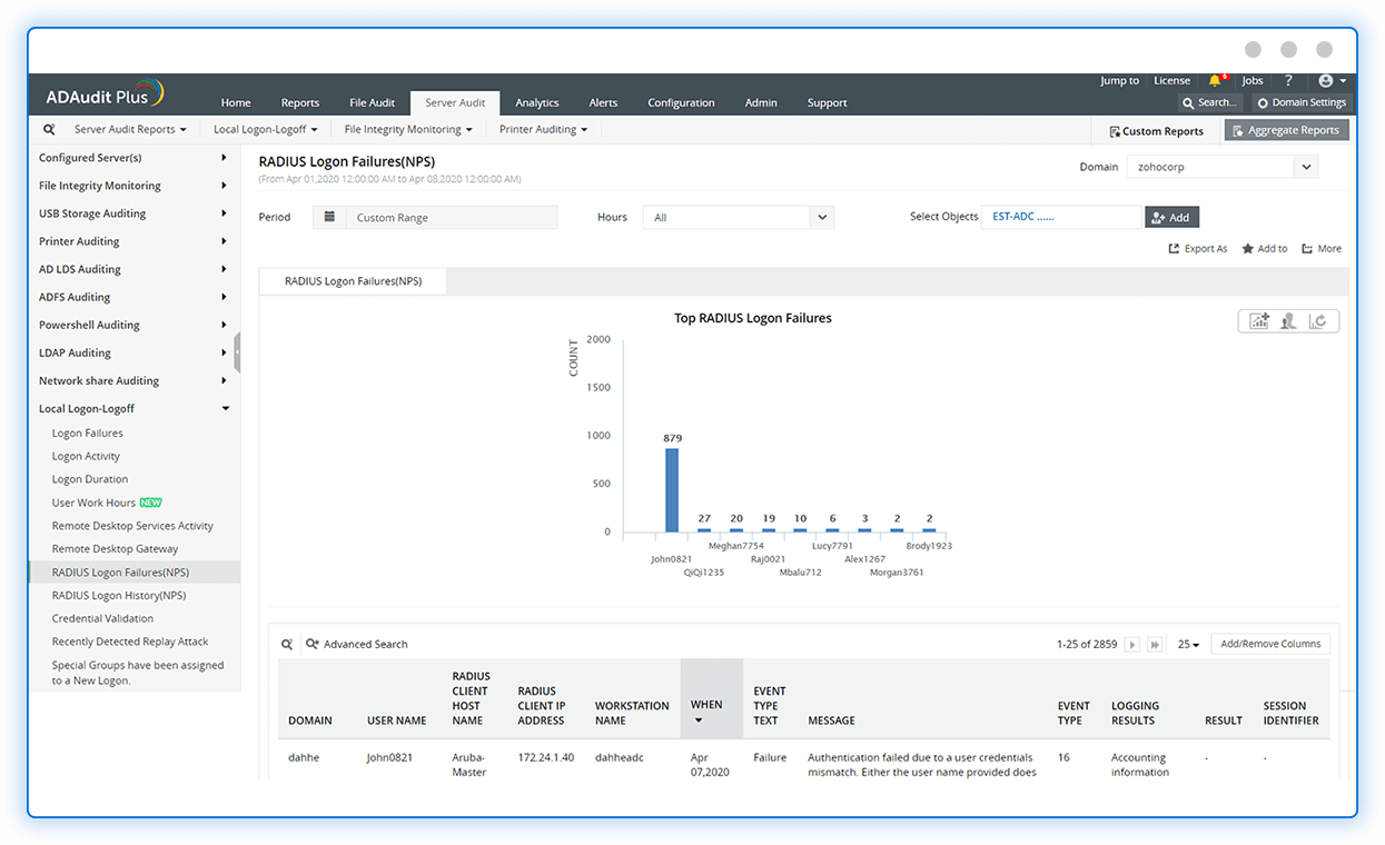 Leverage ADAudit Plus' UBA-driven change auditing capabilities to detect and respond to brute-force attacks, malicious insiders, ransomware, and other threats.