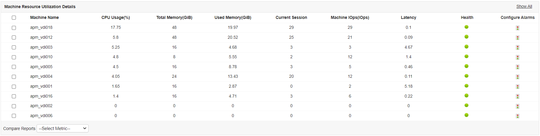 Applications Manager's Citrix Virtual Apps and Desktop monitor lets you track critical machine related metrics. Identify machines that are at fault and troubleshoot quickly before it affects the end users. Become aware of machines in maintenance mode.