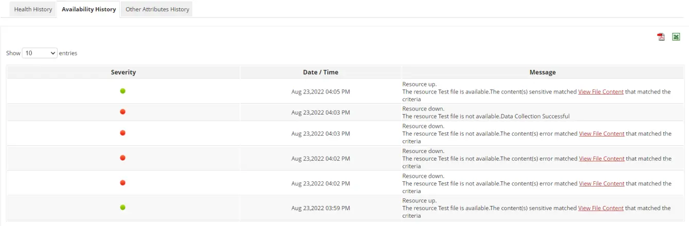 Applications Manager assesses the file integrity by monitoring attributes such as total file size, file size change, time since last modification and time of modification. Based on the threshold assigned by the user, our tool aggregates whether the file change is valid or not. You can also configure the monitor to get an alert if the file gets deleted.