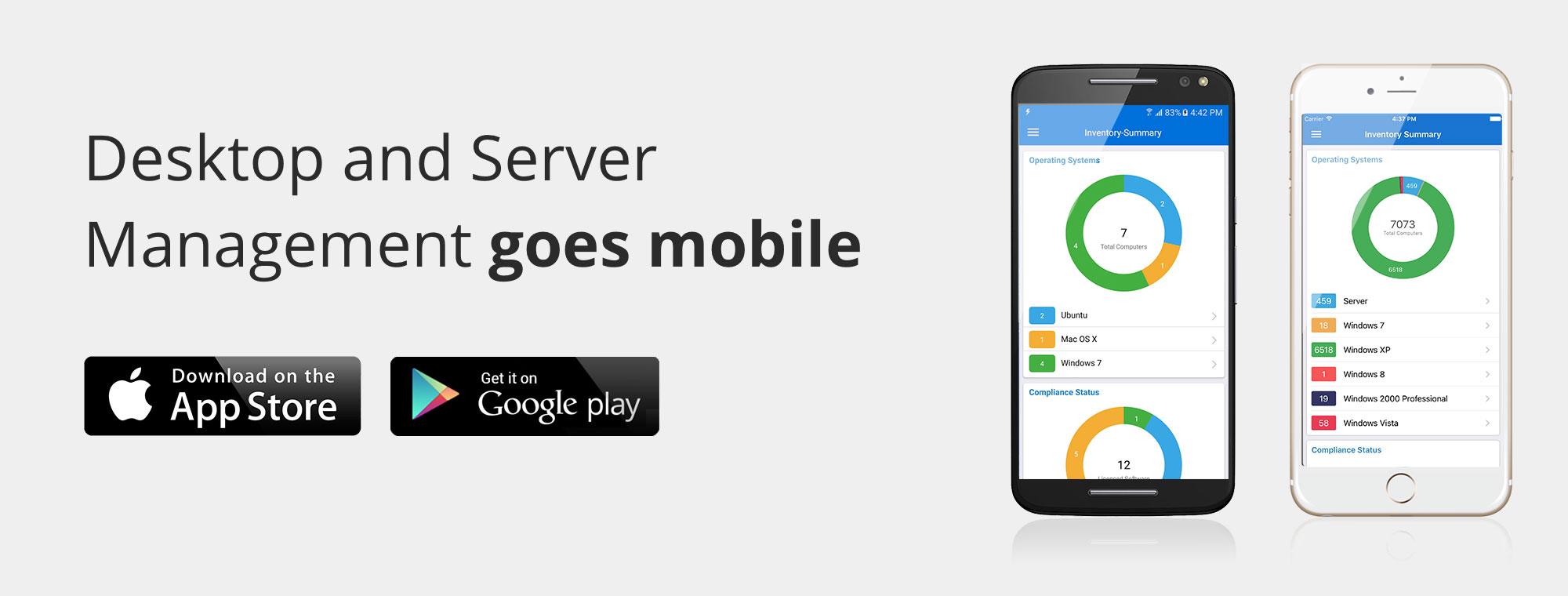 Endpoint management is no longer a job which holds you back on your seat. You can now start managing your desktops and servers anywhere, any time. Perform activities like installing agent on a new computer, retiring computers from the network, patch deployment and much more, all from your mobile phone. Endpoint Central's mobile app can be used to manage Windows, Mac and Linux computers.