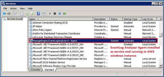 EventLog Analyzer agent is installed as a service in AWS Windows instance.