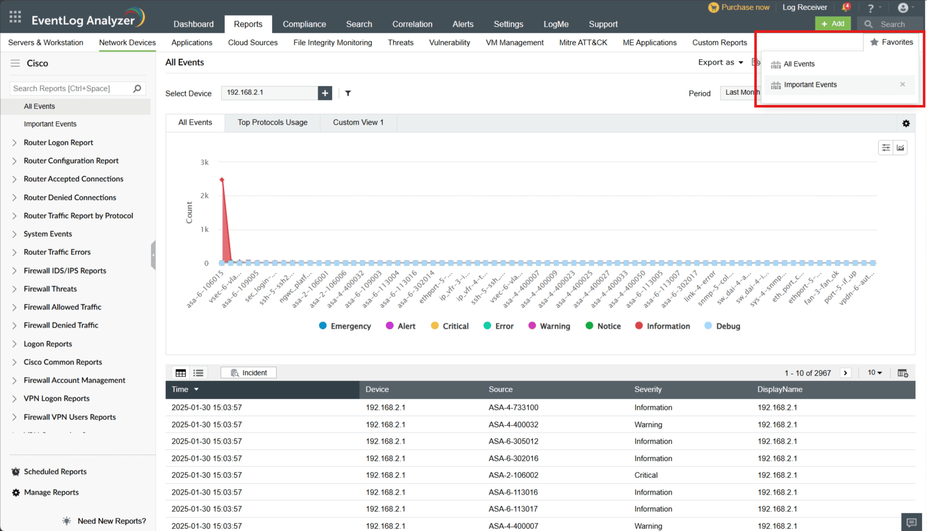 Note: While upgrading to the latest build of EventLog Analyzer, favorite reports in Builds 11212 and below will not be retained.