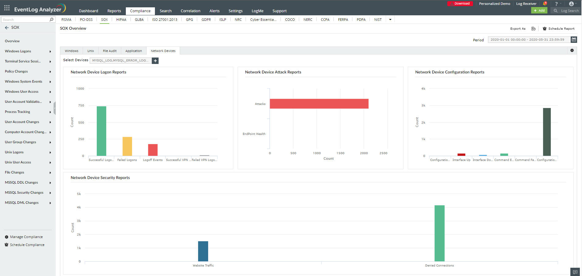Take a look at the reports EventLog Analyzer has to offer for meeting SOX compliance requirements: