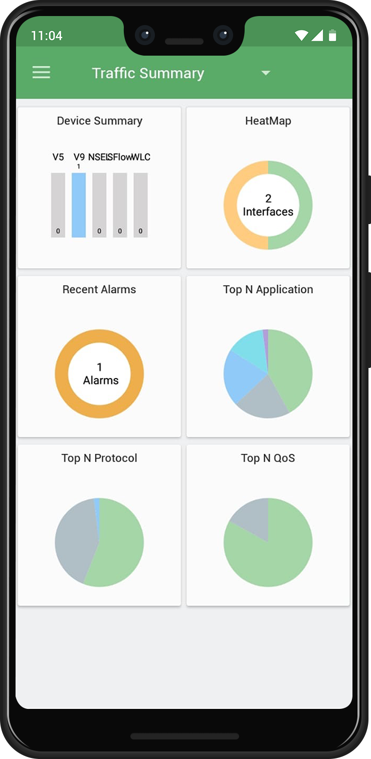 ManageEngine NetFlow Analyzer offers an extensive view of network devices, routers, interfaces, LAN, WAN, and applications. With the NetFlow Analyzer mobile application, diagnose and and address issues quickly from anywhere, anytime. Monitor your network traffic activity in real-time without having to be tied to your desk.