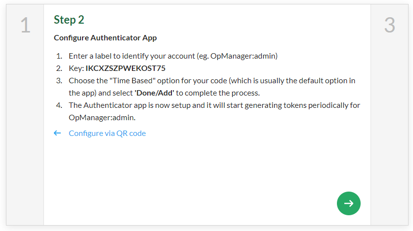 - If the default 'admin' user is unable to login to the product, and has lost the configured mobile device, contact our support at oputils-support@manageengine.com to reset the TOTP secret for the default 'admin' user.