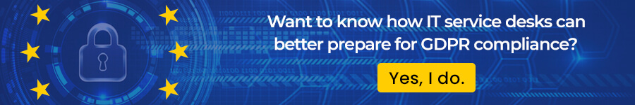 IT service desks constantly deal with personal data. For example, service request templates invariably require a first name, last name, email, and phone number. That puts all IT service desks that collect, process, or store personal data of EU residents under the GDPR's scruntiny and dictates the need for a proper compliance program for IT service management.