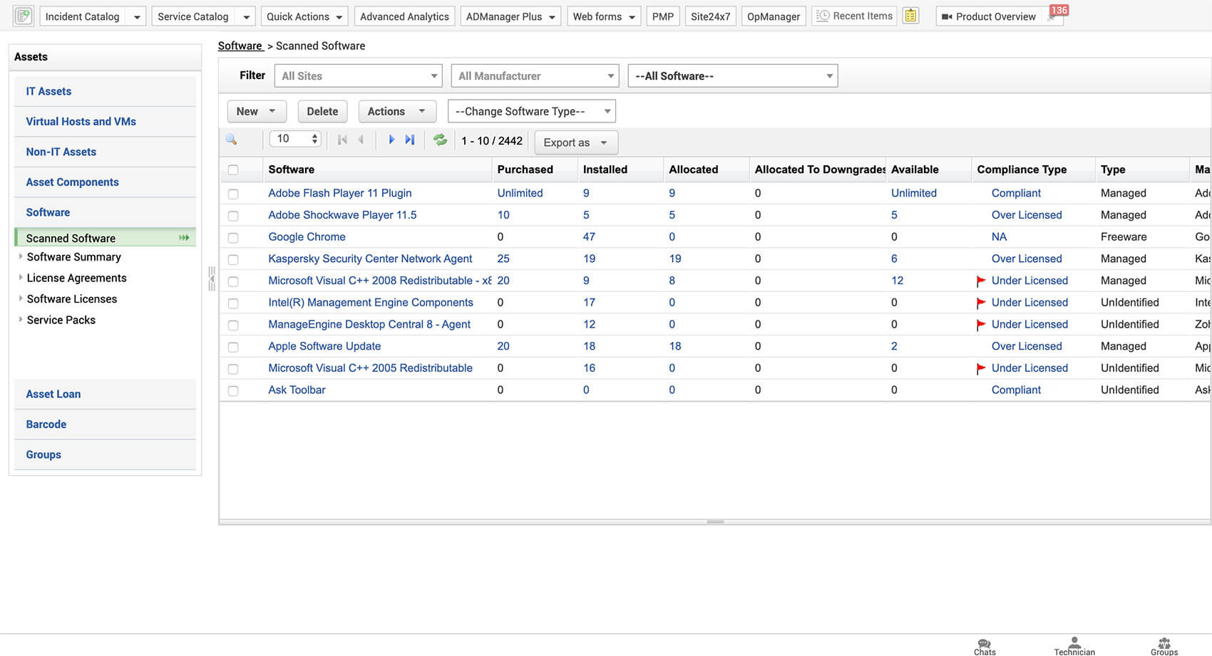 • Optimize asset utilization and gear up for license audits by keeping tabs on your software compliance metrics.