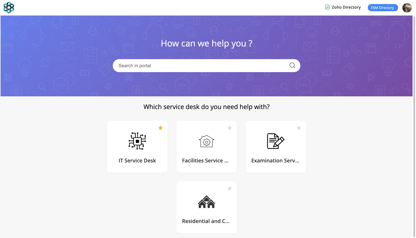 • Create a unified campus-wide self-service portal that helps end users access different departments for requesting services or registering complaints.