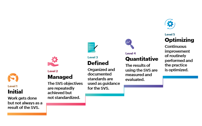 When assessing the service value system, the maturity of each component shown below is evaluated against the maturity levels that have been defined for the SVS: