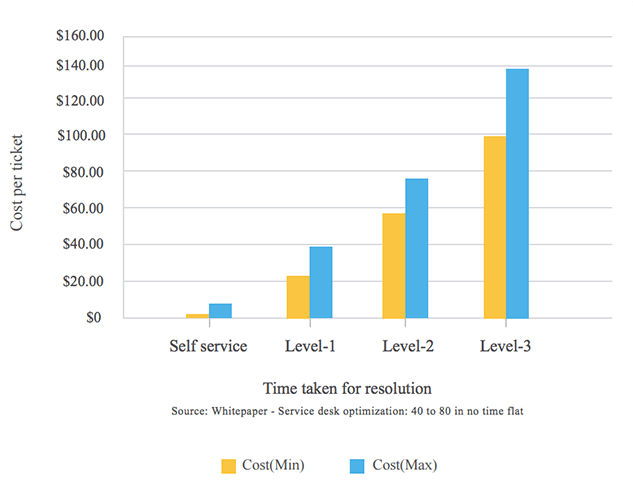 Firstcall resolution is also related to cost per ticket. The following graph represents the cost per ticket for every level.