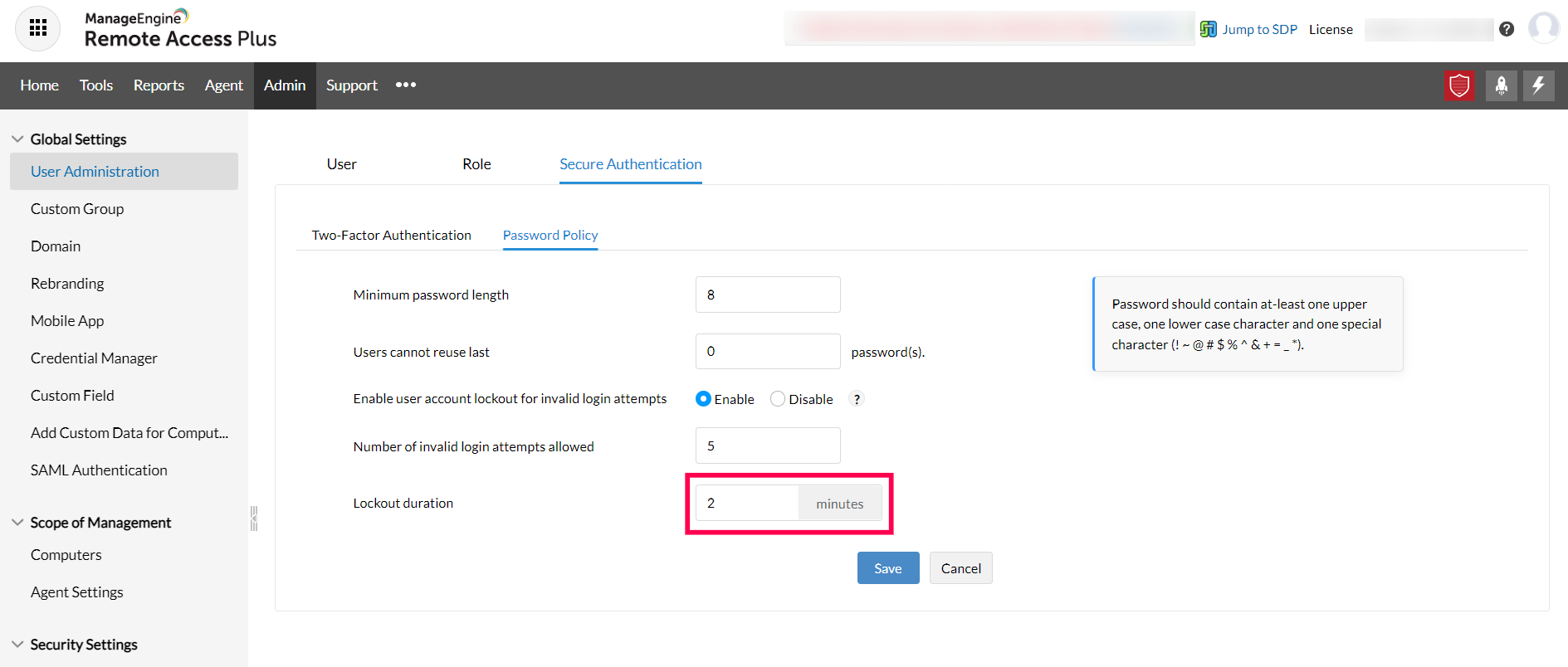 NOTE: Ensure to log in only after completion of the lockout period.