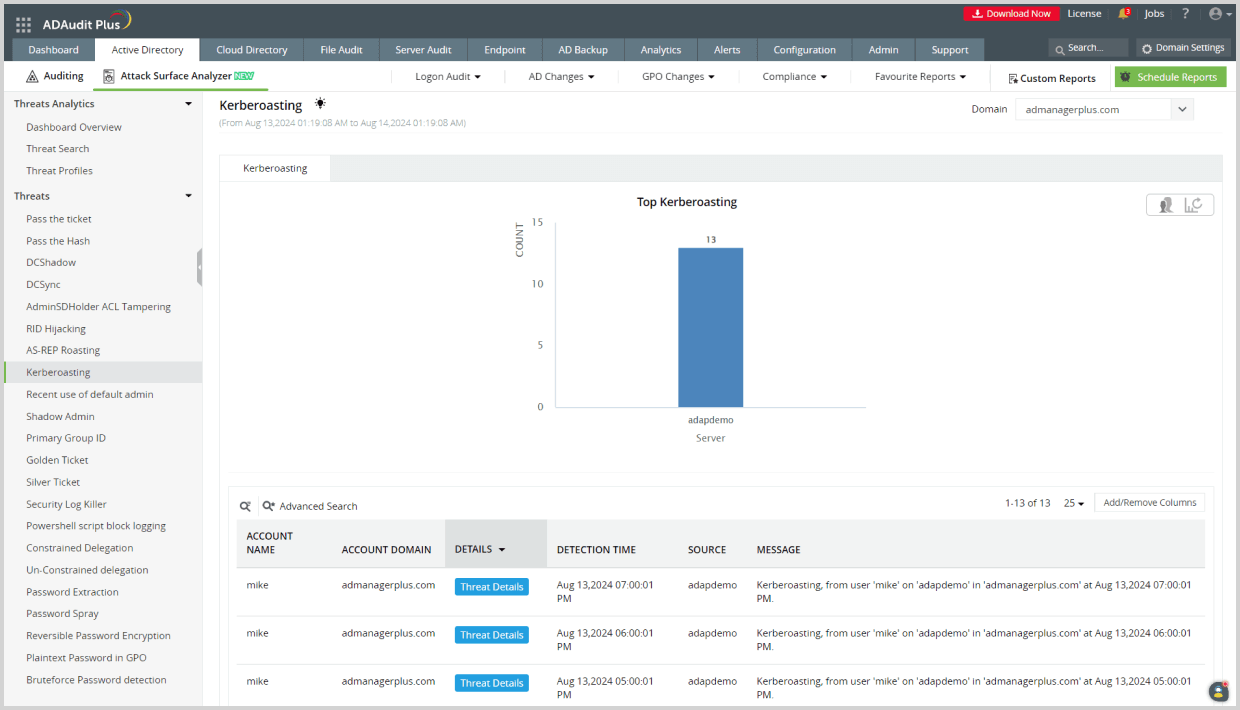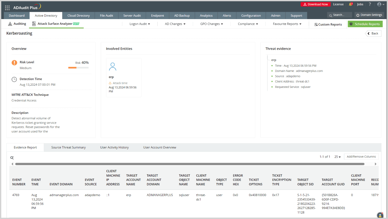 Comment ADAudit Plus aide à détecter et prévenir les attaques de Kerberoasting
