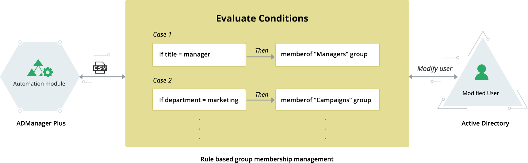 Choisissez parmi des catégories telles que les automatismes d'utilisateurs, d'ordinateurs, de groupes et de contacts. Déverrouillez automatiquement les utilisateurs, désactivez les ordinateurs inactifs, et plus encore.