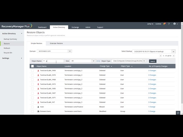 Regardez cette courte démonstration et découvrez comment effectuer toutes ces actions en utilisant RecoveryManager Plus.