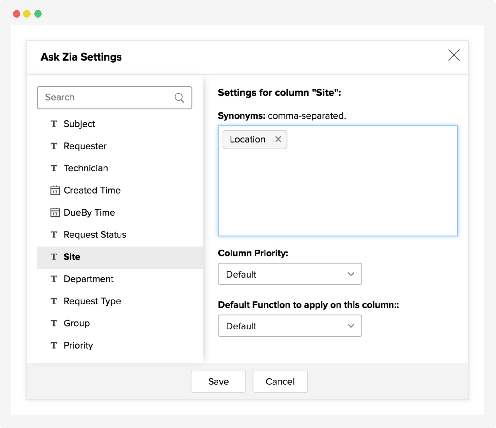 Définissez les termes, fonctions ou mesures prioritaires, ajustez les paramètres par défaut et affinez encore davantage le comportement de Zia selon vos préférences.