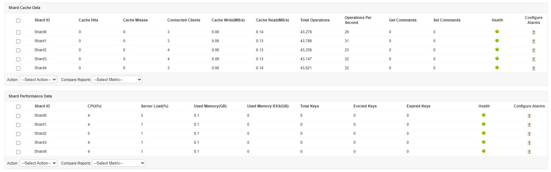 Assurez la haute disponibilité des caches en cluster en suivant diverses partitions de shards dans l’instance de cache. Analysez la performance de chaque shard présent dans le cluster de cache en suivant des métriques clés comme les accès/échecs de cache, la mémoire utilisée, les commandes et opérations, l’utilisation processeur et la charge serveur, comme pour l’instance de cache. Comparez la performance de plusieurs shards sur les métriques utiles et prenez les mesures requises pour gérer les données de cache entre plusieurs nœuds afin de gagner en fiabilité et évolutivité.